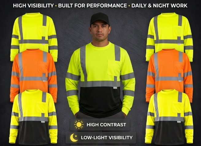 Designed for construction, roadwork, and outdoor jobs where visibility matters. Bright colors and reflective elements help you stay seen in busy or low-light environments.